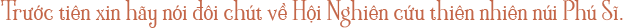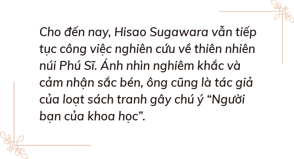 Với ý tưởng tập hợp nhiều nhà chuyên môn cùng nghiên cứu và khám phá thiên nhiên của núi Phú Sĩ, tôi và thầy Takahashi Setsuzo - chuyên gia về các loài chim - đã thành lập Hội Nghiên cứu thiên nhiên núi Phú Sĩ vào năm 1996. Hiện tại, hội có khoảng 20 người, bao gồm các chuyên gia trong nhiều lĩnh vực như địa chất, thảm thực vật, thực vật, dương xỉ, côn trùng, chuồn chuồn, kiến, bướm, chim, động vật hữu nhũ,... tất cả đều quan tâm đến núi Phú Sĩ, vừa giúp đỡ nhau thực hiện nghiên cứu vừa cùng nhau học hỏi. Mỗi năm chúng tôi chọn một khu vực khác nhau để tập trung nghiên cứu. Năm nay có lẽ là chủ đề nghiên cứu tổng hợp về môi trường tự nhiên ở dốc núi phía Nam và giải thích về những tác động của con người.