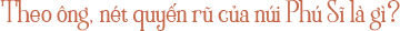 Tôi rất hạnh phúc! Dù nhìn mỗi ngày vẫn cảm thấy rất hạnh phúc! Nhà văn Kyuya Fukada viết trong cuốn “100 ngọn núi nổi tiếng Nhật Bản” là “Dù mang hình dáng đơn giản nhất nhưng việc có thể trở thành dáng hình đẹp đẽ không ai có thể bắt chước như thế quả là một điều kì diệu”. Về khía cạnh địa chất thì ngọn núi có độ dốc như núi Phú Sĩ khá là hiếm có. Tuy nhiên, hình dáng này chỉ tồn tại lúc này mà thôi, 10.000 năm trước không có hình dáng như vậy, và 10.000 năm sau có thể cũng sẽ không còn. Chúng ta thật may mắn khi có thể chiêm ngưỡng hình dáng tuyệt mỹ này, đúng không. Vậy nên mọi người cũng hãy cảm thấy hạnh phúc khi nhìn ngắm ngọn núi nhé.