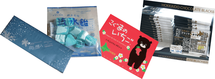 Socola, bánh Shiroi Koibito kẹp socola trắng, bánh quy dâu, kẹo “băng trôi”, sản phẩm từ thủy hải sản…